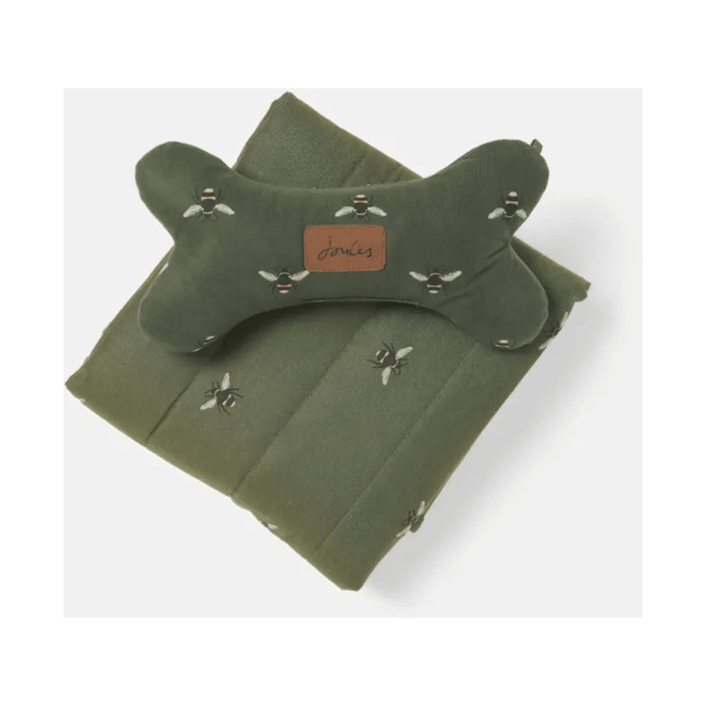 Leuke, cosy set met een zacht deken en een speels been in vrolijke bijenprint. Ideaal om je hond extra comfort en ontspanning te geven.Wat maakt deze bijenprint set zo leuk?