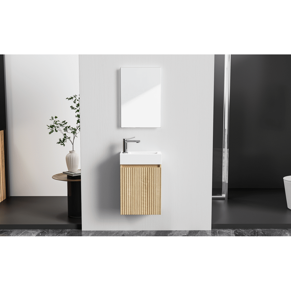 De Aloni Mikaro toiletspiegel in licht eiken zorgt voor een frisse en natuurlijke look in je interieur. Jij combineert functionaliteit met een warme houtuitstraling die elke ruimte meteen gezelliger maakt. Ideaal voor toiletten of kleinere badkamers waar je toch een verfijnde afwerking wil.