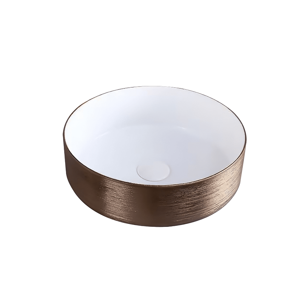 Aloni Turo Waskom Met Reliëf - Keramiek - 36x12x36 Cm - Geborsteld Koper/glanzend Wit