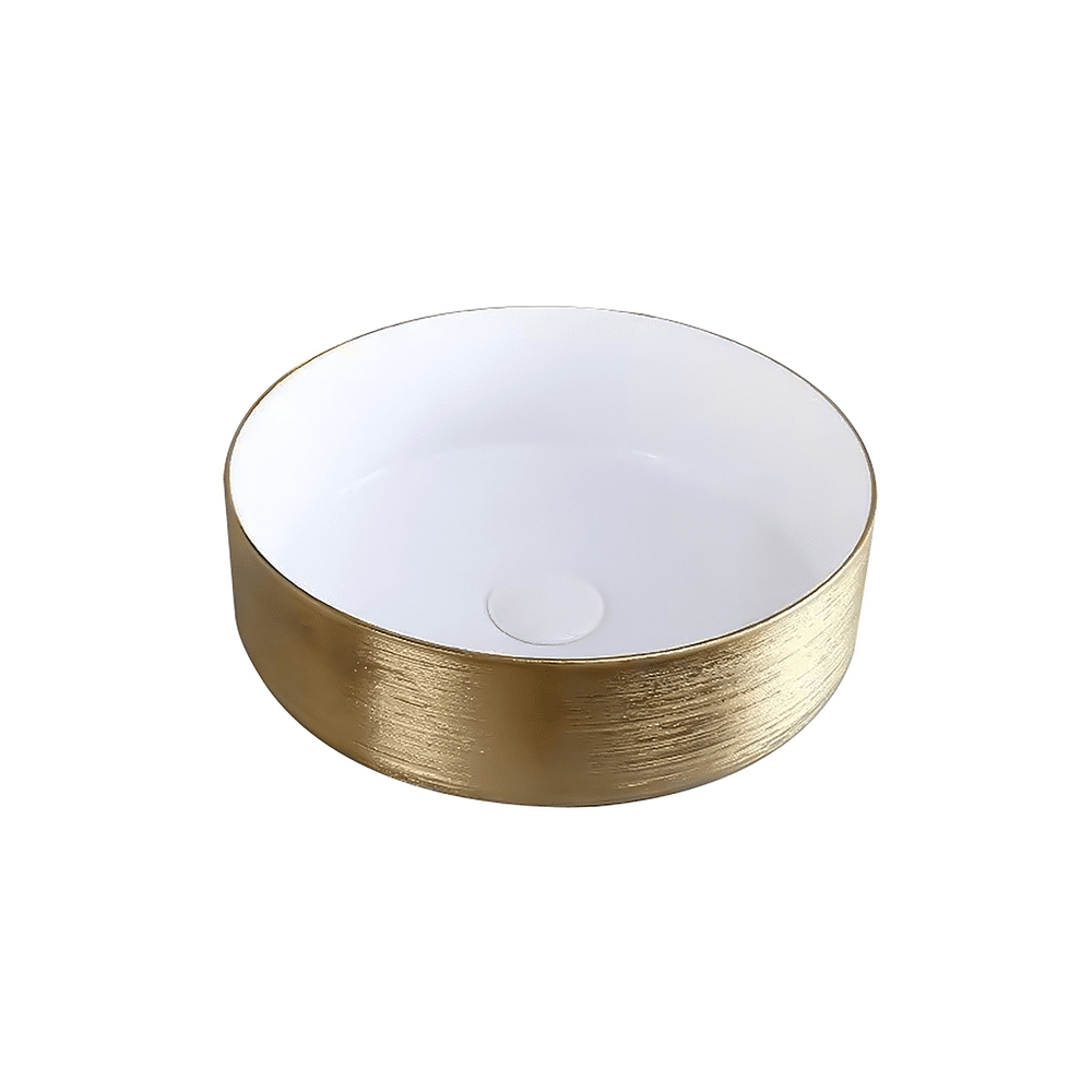 Aloni Turo Waskom Met Reliëf - Keramiek - 36x12x36 Cm - Goud/glanzend Wit