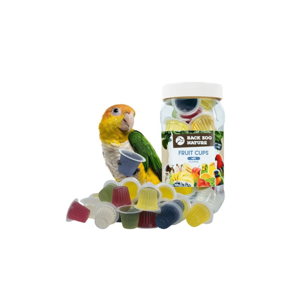 Fruit bevat natuurlijke suikers die essentieel zijn voor de energie van vogels en knaagdieren. In de natuur eten vogels veel fruit, nectar en bloemen. Deze fruitkuipjes bevatten bijna evenveel natuurlijke suikers als vers fruit en zijn ideaal als tussendoortje wanneer vers fruit niet beschikbaar is, zonder rommel in het verblijf te maken.
