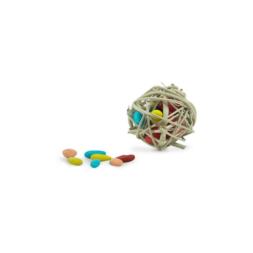 De Back Zoo Nature Snoepballen Ø3cm 6st zijn natuurlijke, vulbare balletjes waarmee je vrolijk gekleurde snoepjes kunt verstoppen. Ideaal als foerageer- en voerspeelgoed voor vogels en knaagdieren, zodat jouw huisdier actief bezig is en zijn natuurlijke gedrag kan volgen.