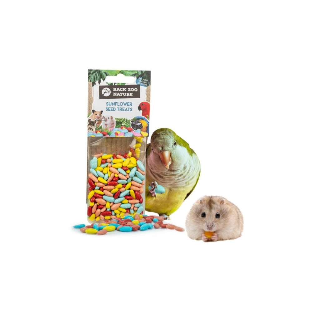 De Back Zoo Nature Treetees Papegaai Zonnebloemsnoep 100g zijn kleurrijke, smakelijke tussendoortjes voor vogels en knaagdieren. Verstop de snoepjes in foerageerspeelgoed en stimuleer het natuurlijke zoek- en foerageergedrag van jouw huisdier.