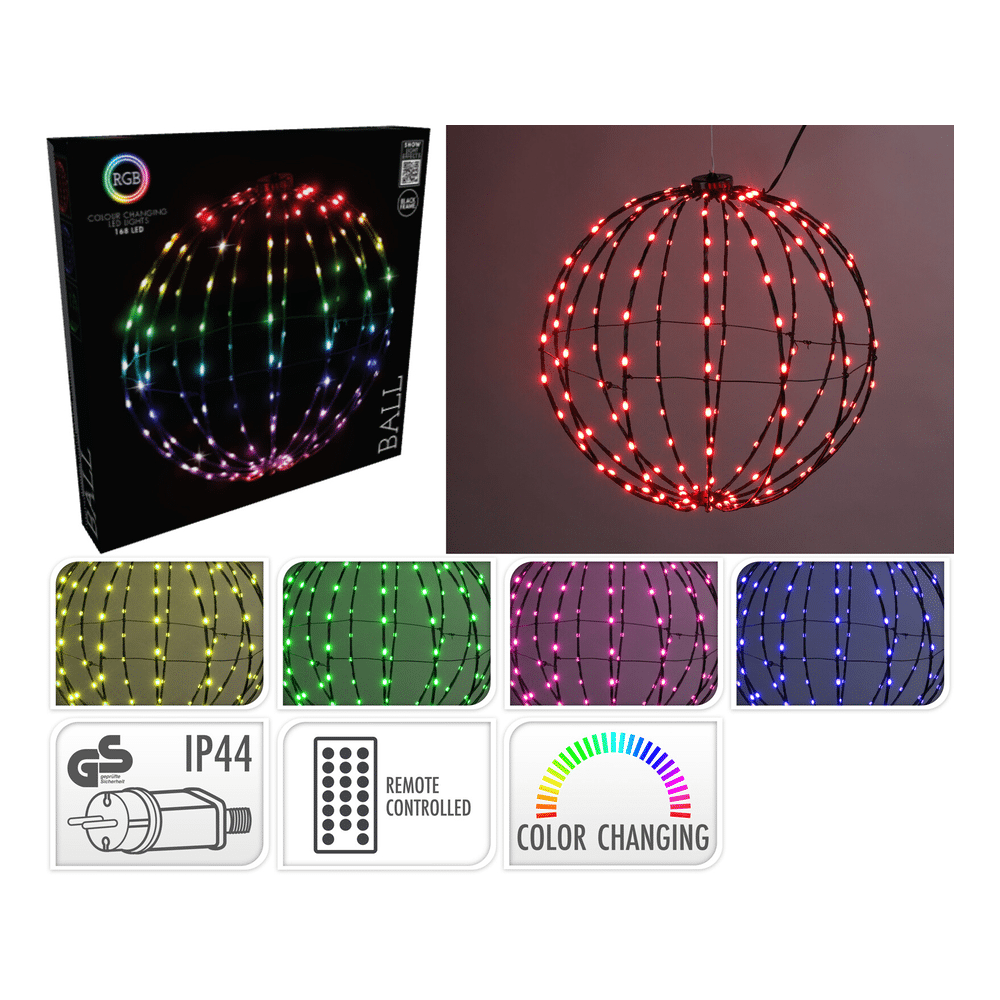 Deze kerstverlichting is niet zomaar decoratie. Dankzij de RGB LED’s verandert de bol constant van kleur, voor een speels en betoverend effect. Perfect voor buiten, want hij is spatwaterdicht én energiezuinig.- Met 168 kleurrijke LED’s die dansen in het donker