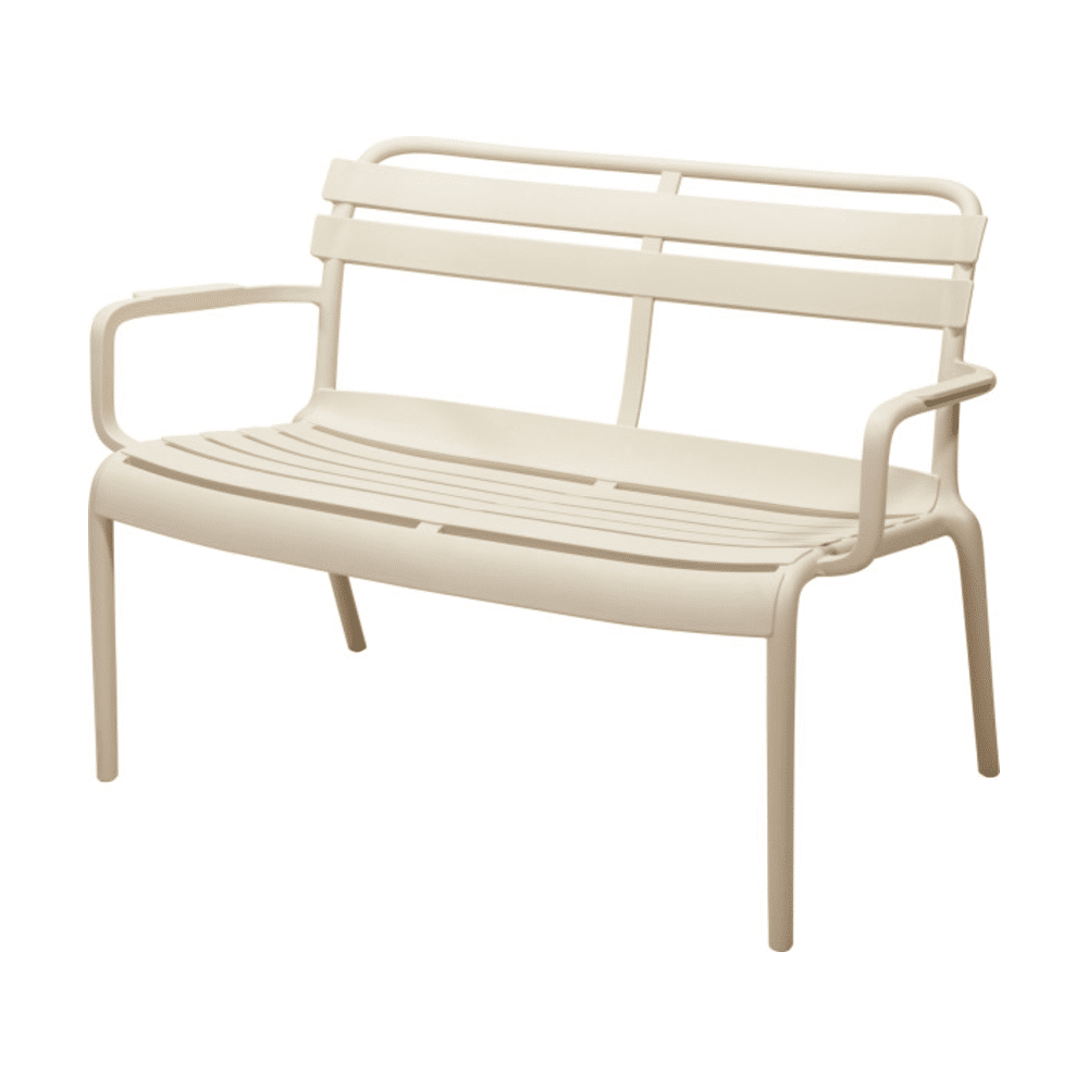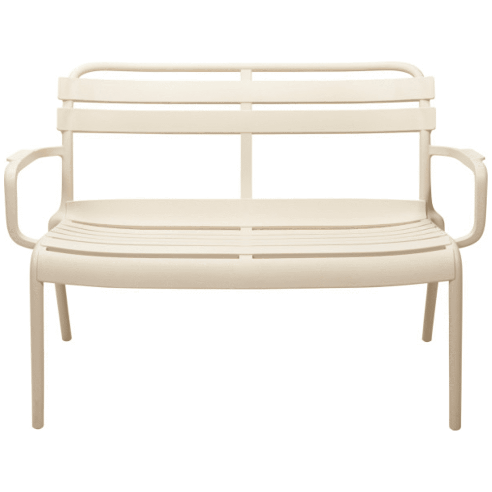 De lichte kunststof (PP) constructie maakt de bank makkelijk verplaatsbaar. Dankzij het neutrale beige design past hij bij iedere stijl. Stapelbaar en
