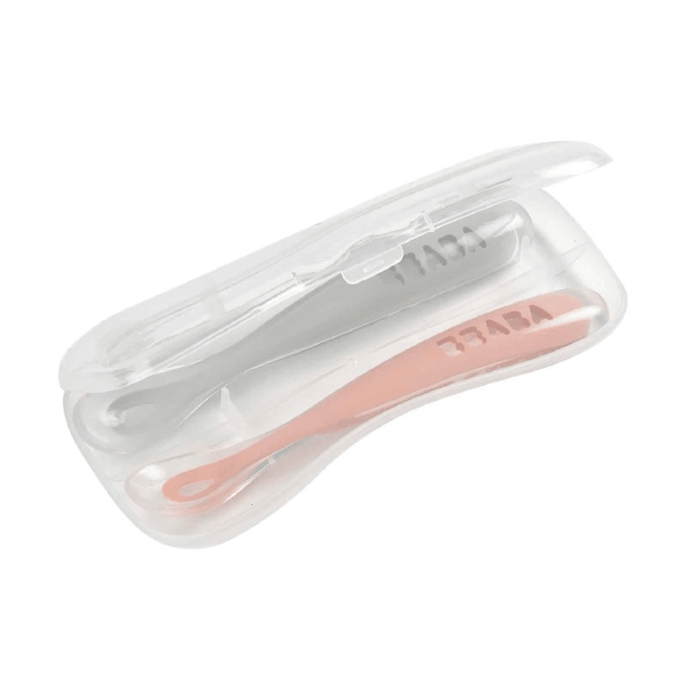 Beaba Siliconen Lepel 1ste Leeftijd – Cotton Candy Marshmallow (2-pack + Reisetui)