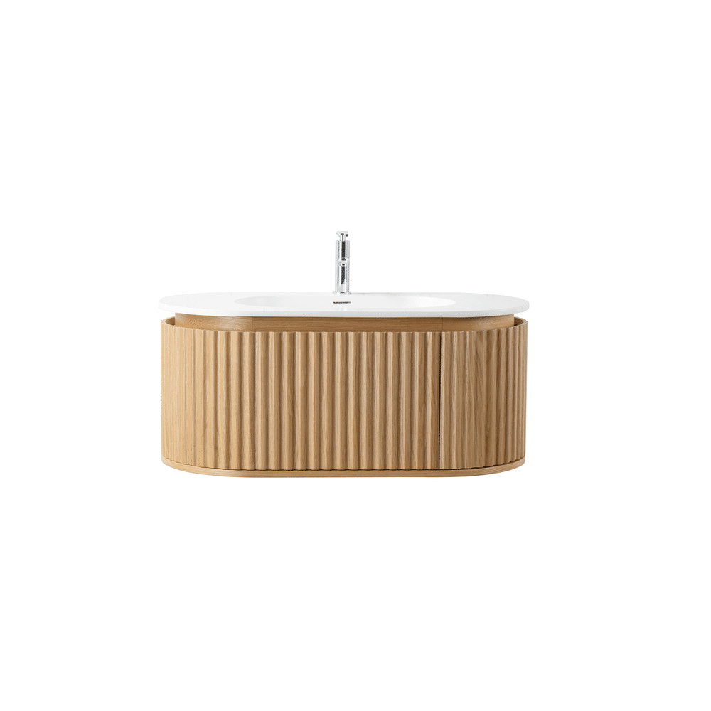 Begonia Wastafelonderkast - 1 Lade - Greeploos - Soft Close - 99x42x52.5 Cm - Naturel Eiken