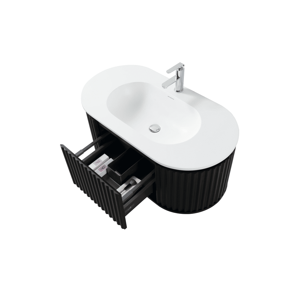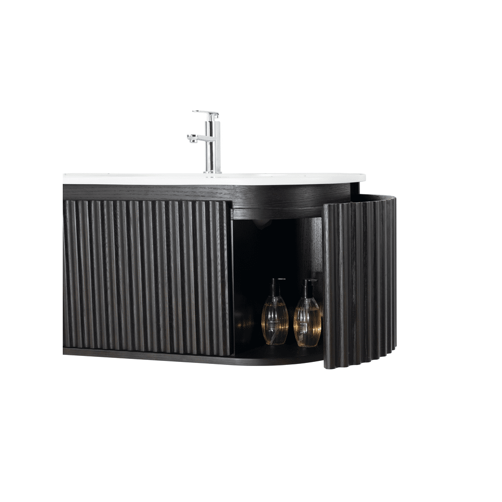 Begonia Wastafelonderkast - 1 Lade - Greeploos - Soft Close - 99x42x52.5 Cm - Zwart Eiken