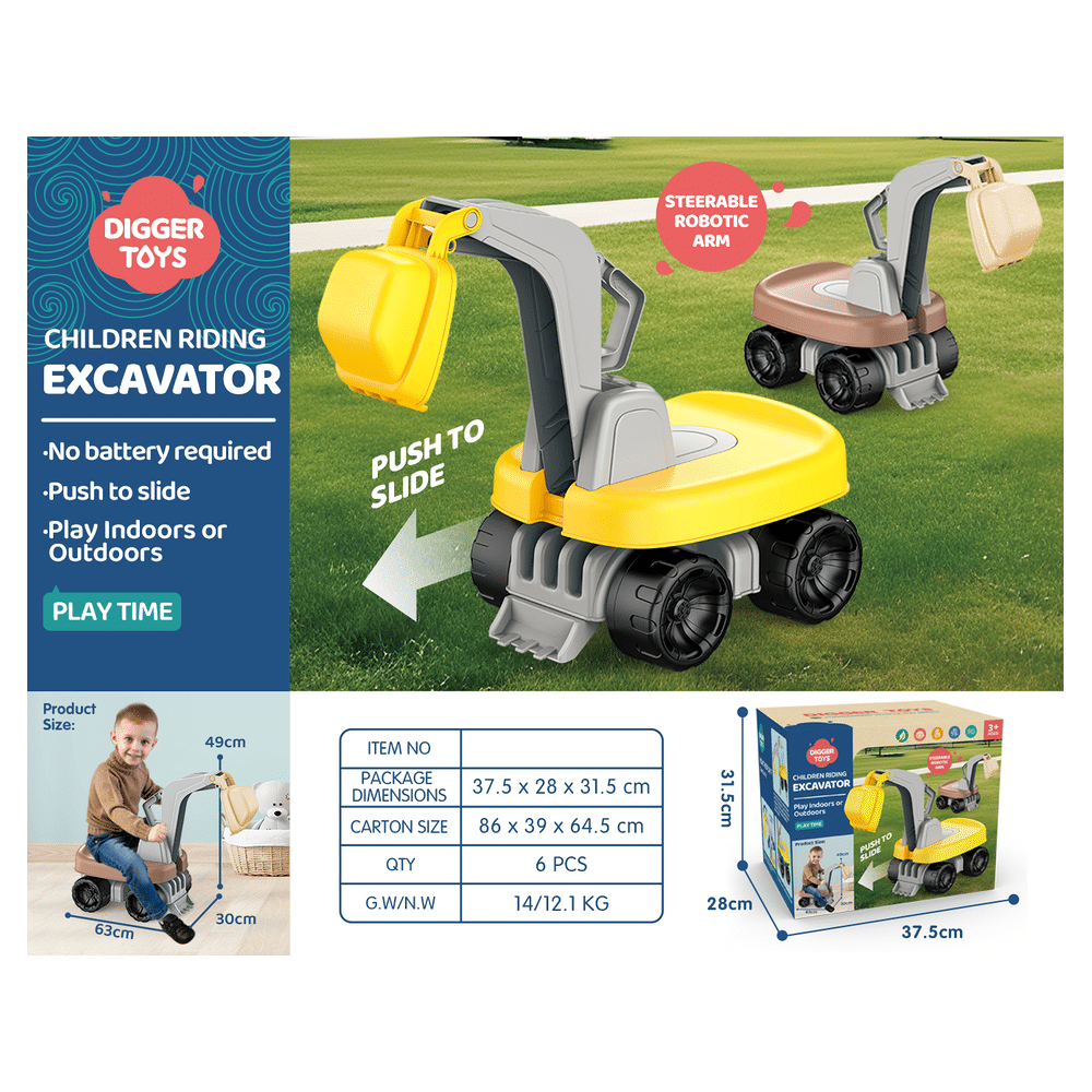 Deze sit-on graafmachine stimuleert creativiteit en motoriek terwijl je kind lekker actief bezig is.- robust en veilig ontwerp voor kinderen
