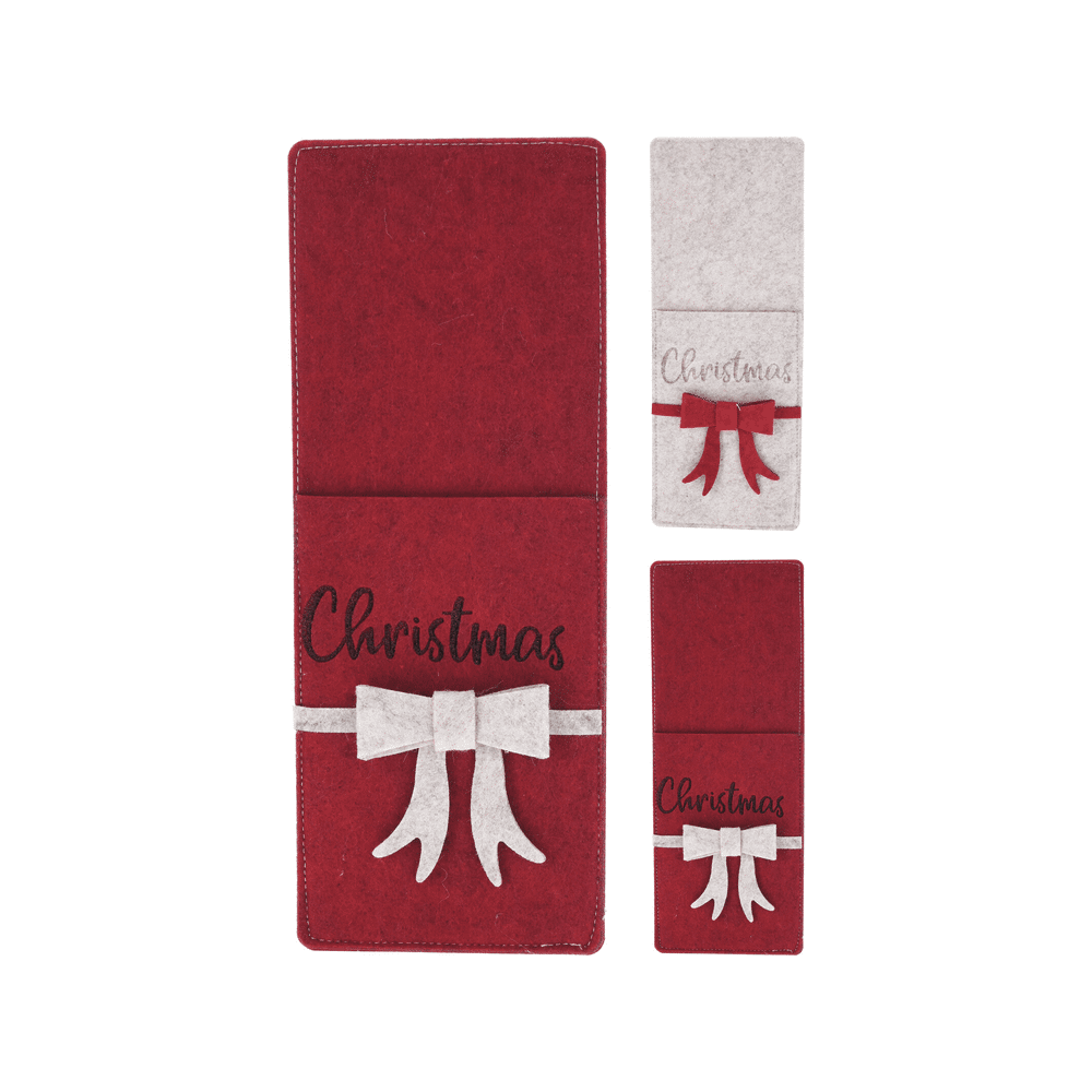 Met deze kerst bestekzakjes maak je elke tafelsetting magisch. De combinatie van warme kleuren en een elegante strik zorgt voor die gezellige, feestelijke uitstraling waar iedereen blij van wordt.- Gemaakt van duurzaam polyester vilt