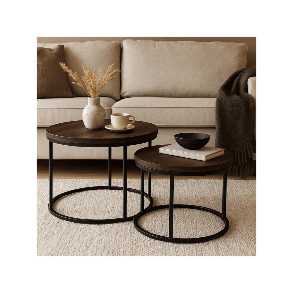 Deze set van twee ronde bijzettafels combineert functionaliteit met stijl. Ideaal om drankjes, boeken of decoratieve items op te plaatsen. De tafeltjes passen perfect in zowel moderne als klassieke interieurs.