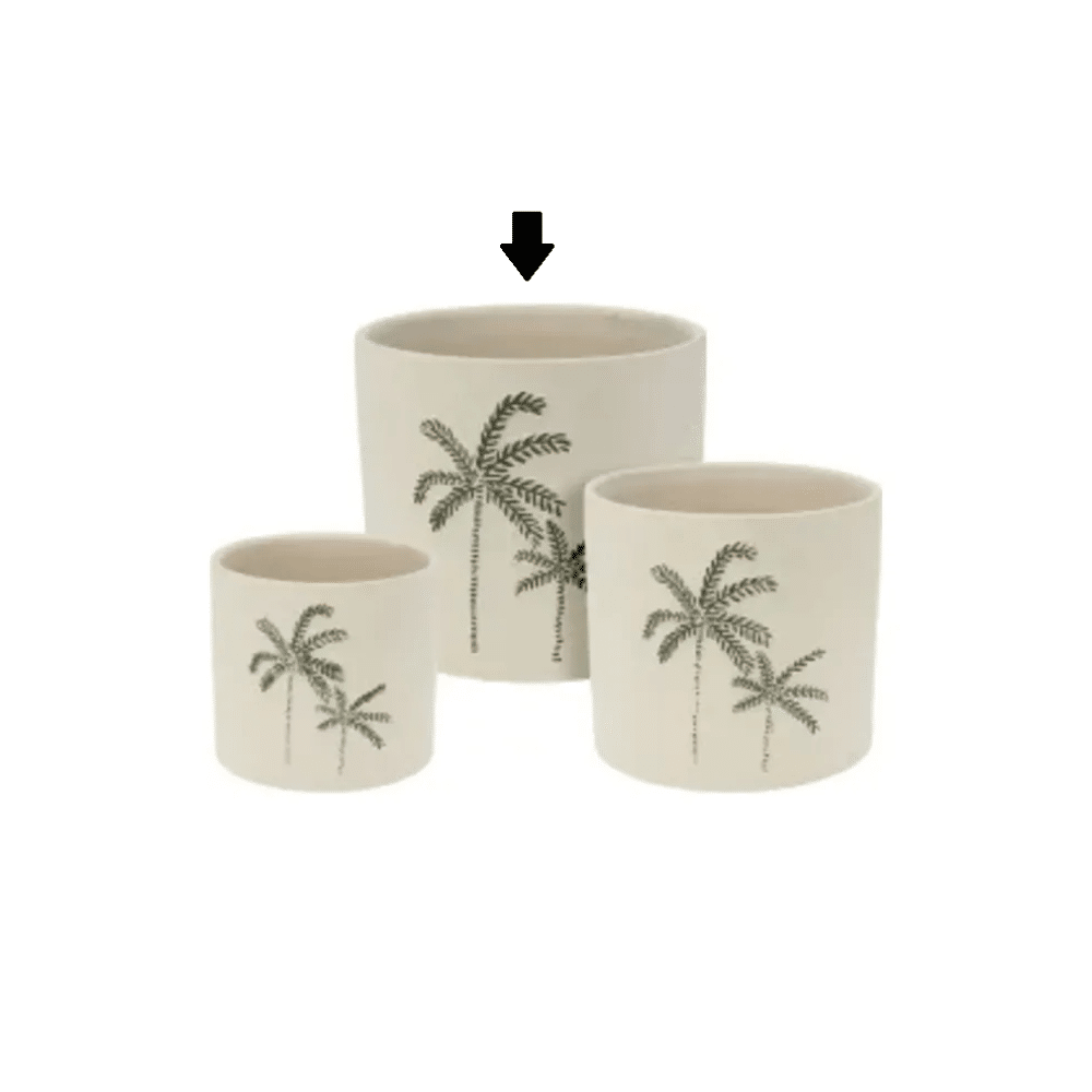 De bloempot groot beige met palmboomdesign geeft je interieur een frisse en opvallende uitstraling. Ideaal om grotere planten stijlvol tot hun recht te laten komen.