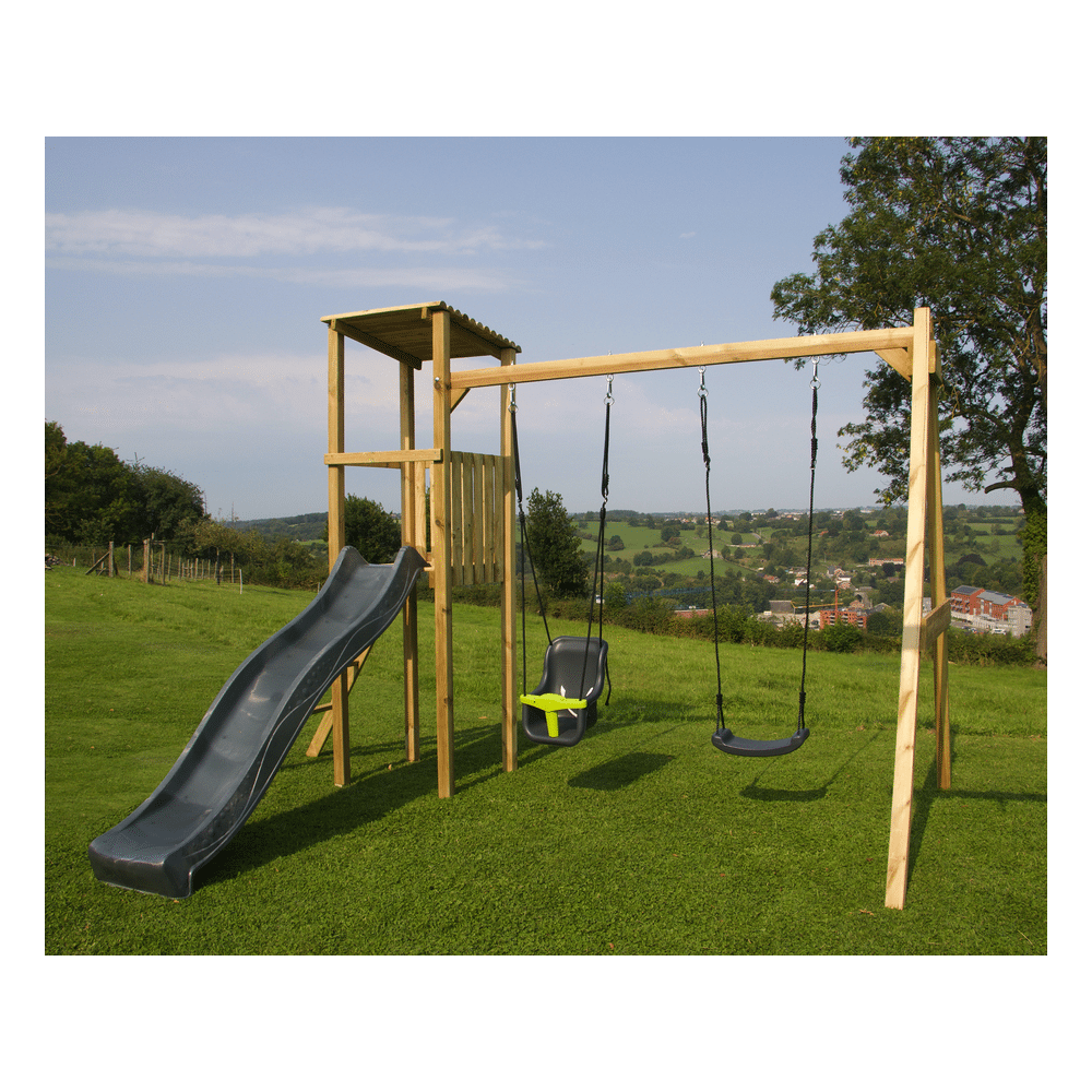 - Product: Bnb Woods Schommel Lila Met Toren En Glijbaan Antraciet