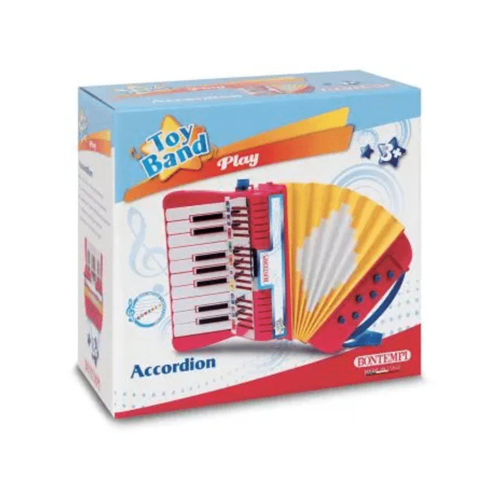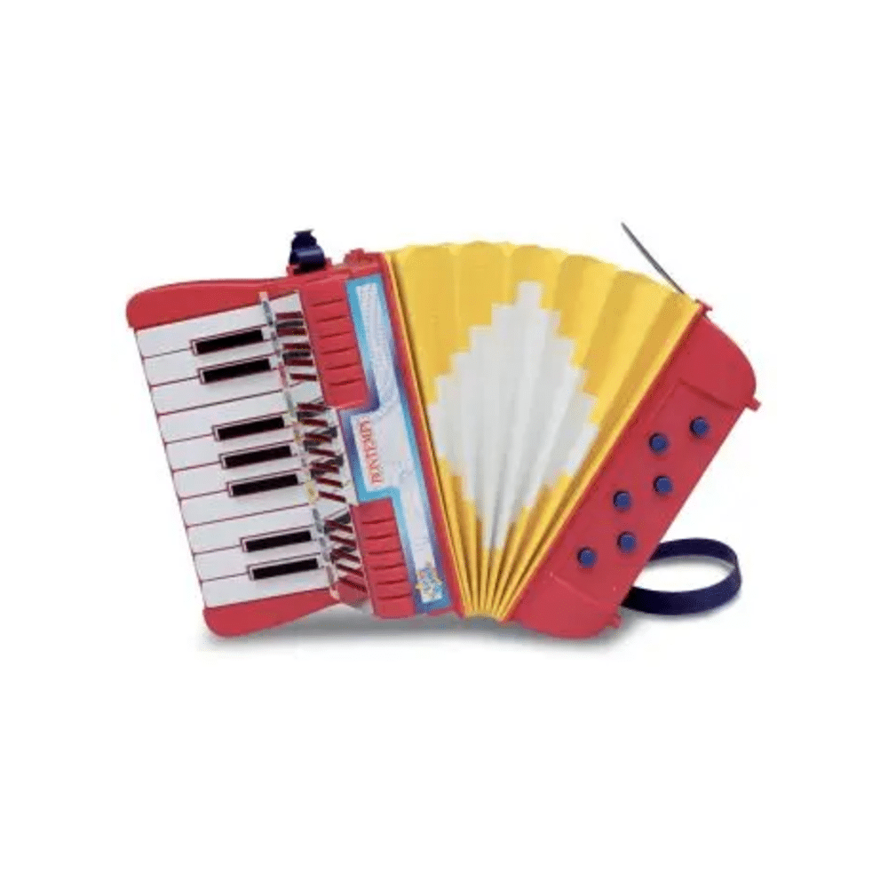 De Bontempi Accordeon 17 Noten en 6 Bass Knoppen is perfect voor kinderen vanaf 5 jaar.Een leuke manier om spelenderwijs muziek te leren en plezier te maken.- Bevordert concentratie en fijne motoriek