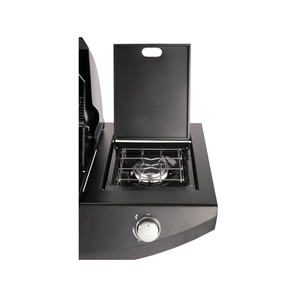 De zijbrander van 3,7 KW houdt gerechten warm of laat je sauzen en soepen bereiden terwijl de hoofdbranders actief zijn. De brede zijtafels bieden extra werkruimte voor ingrediënten, borden en accessoires.