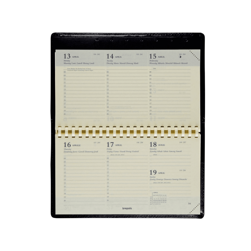 De Brepols Omniplan Agenda Genova is een praktische en veelzijdige planner die speciaal ontworpen is voor een overzichtelijke tijdsindeling. Deze agenda biedt een weekoverzicht op 2 pagina's, met een handige uurindeling van 08:00 tot 20:00 uur. Het spiraalgebonden ontwerp zorgt voor eenvoudig bladeren door de agenda, terwijl de horizontale lay-out een duidelijk en overzichtelijk beeld geeft van je afspraken. Het crèmekleurige papier van 60 g/m² is aangenaam om op te schrijven en bevat scheurhoekjes voor het eenvoudig verwijderen van pagina's. Met een compact formaat van 89 x 160 mm is deze agenda perfect voor dagelijks gebruik, of je nu onderweg bent of op kantoor.