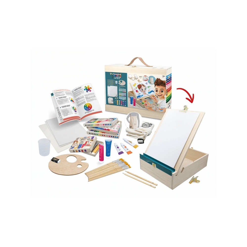 De Buki Professional Studio is ideaal voor kinderen vanaf 7 jaar die graag kunst maken. Een veilige, overzichtelijke en complete set om urenlang te tekenen en schilderen.- Geschikt voor beginners en jonge creatievelingen
