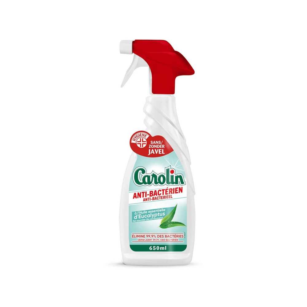 - Product: Carolin Reiniger Spray Ontvetter Anti Bacterieel Essentiele Olie Van Eucalyptus 650ml