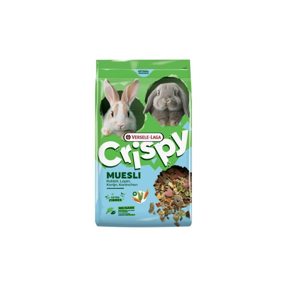 Crispy Muesli Konijn 2.5kg is een smakelijke en evenwichtige voeding die jouw konijn elke dag ondersteunt in vitaliteit en knabbelplezier.