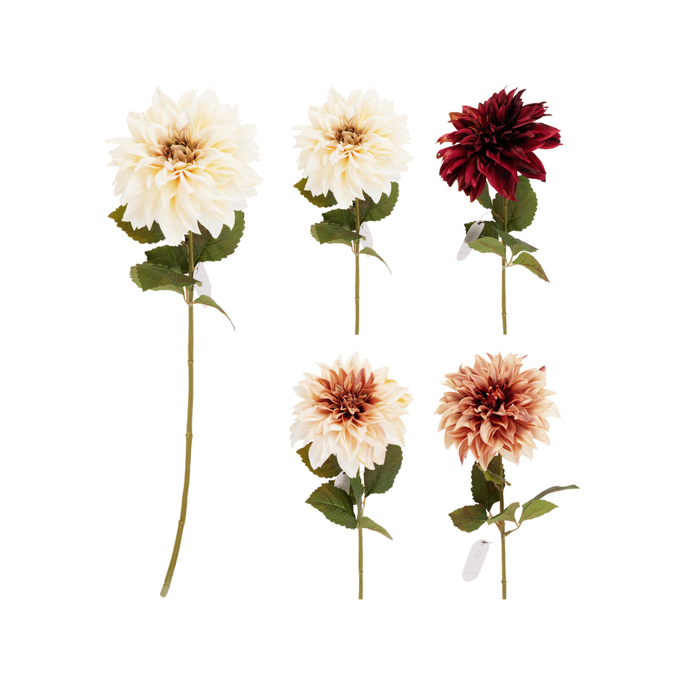 Breng instant kleur in je interieur of op je terras met deze prachtige dahlia van 73 cm hoog. Elke bloem heeft een diameter van 16 cm en is een echte blikvanger. Verkrijgbaar in een assortiment van verschillende kleuren – kies je favoriet of mix er een paar voor een speels effect. Let op: elke kleur wordt apart verkocht.Waarom jij deze dahlia wil