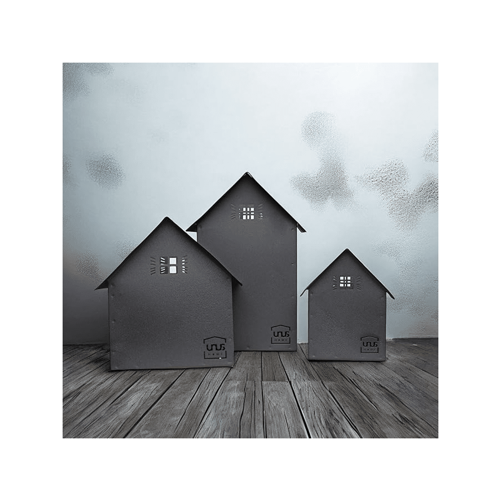 - Product: Decorative Metal House Three Colors Assorted Price Per House 24 Cm