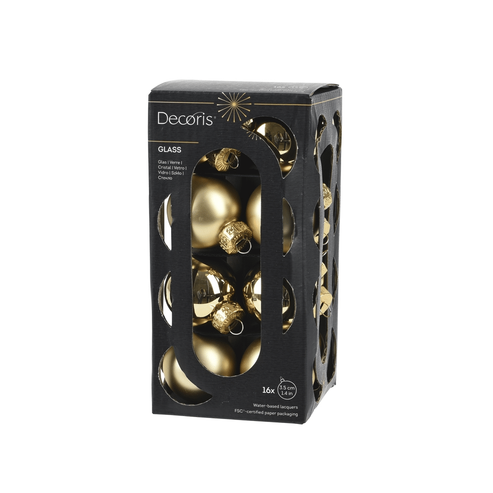 - Product: Decoris Kerstballen Set Glas 3.50cm Licht Goud 16 stuks