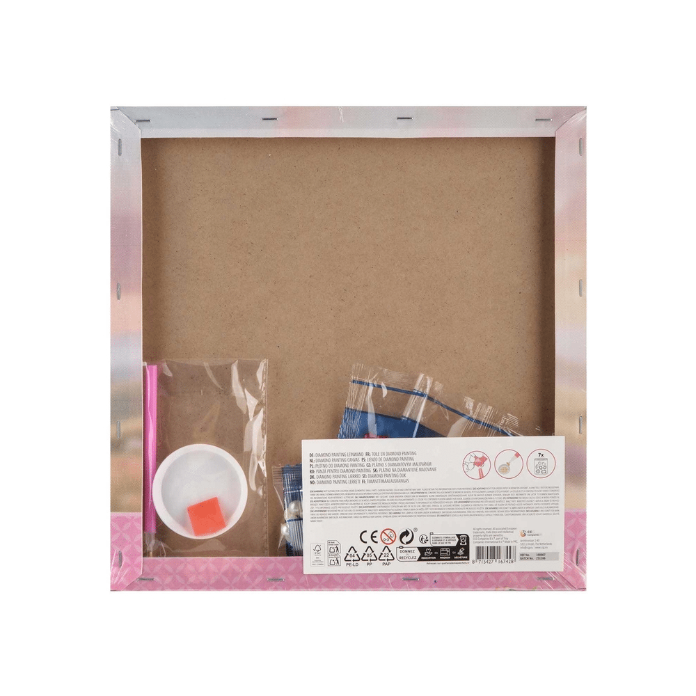 Het diamond painting pakket bevat een canvas van 30x30cm, gekleurde diamantjes, een applicatiepen en wax. Volg de nummers en creëer stap voor stap een schitterend kunstwerk.- Canvas 30x30cm met voorgedrukte nummers