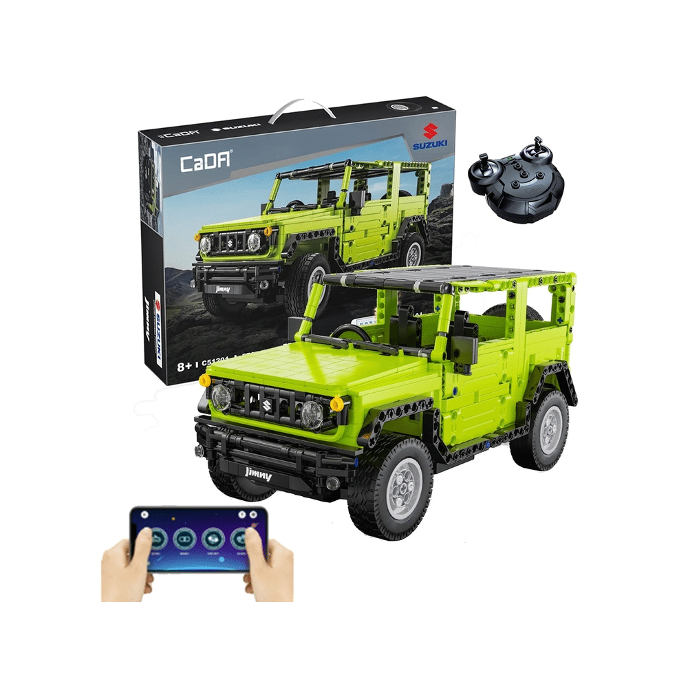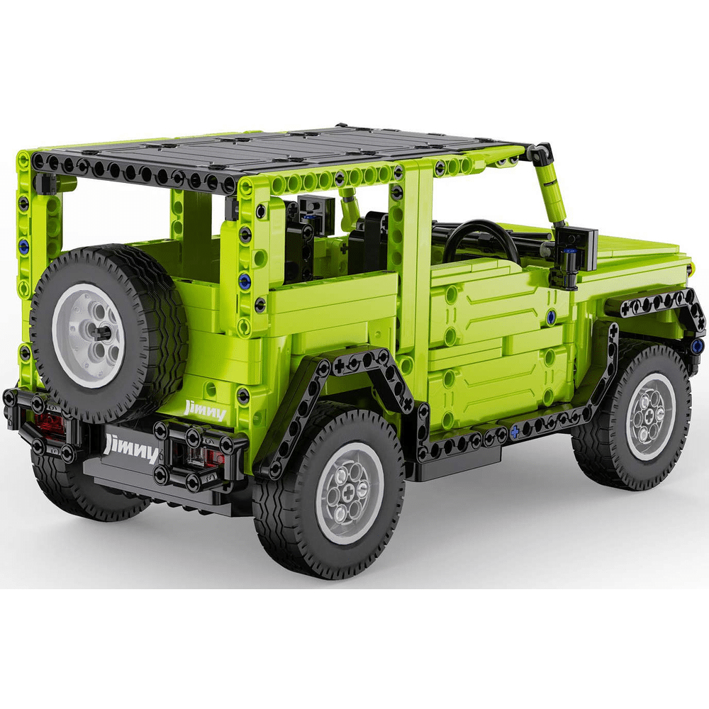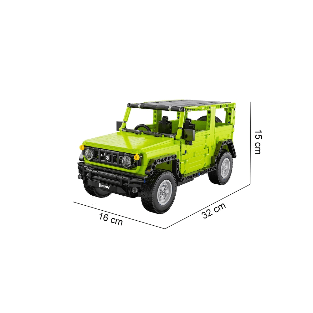 De set bestaat uit 579 elementen en maakt het mogelijk om zelf een op afstand bestuurbare terreinwagen naar het model van de Suzuki Jimny in elkaar te zetten . Het voertuig is gemaakt met speciale aandacht voor details die voor geweldig plezier zorgen. Hij heeft deuren die open kunnen met veren en werkende voor- en achterlichten . De auto heeft een groene carrosserie met zwarte elementen. De set is verpakt in een elegante verpakking, waardoor het speelgoed perfect geschikt is als cadeau. Het voertuig kan worden bestuurd met de meegeleverde afstandsbediening of de telefoonapplicatie.