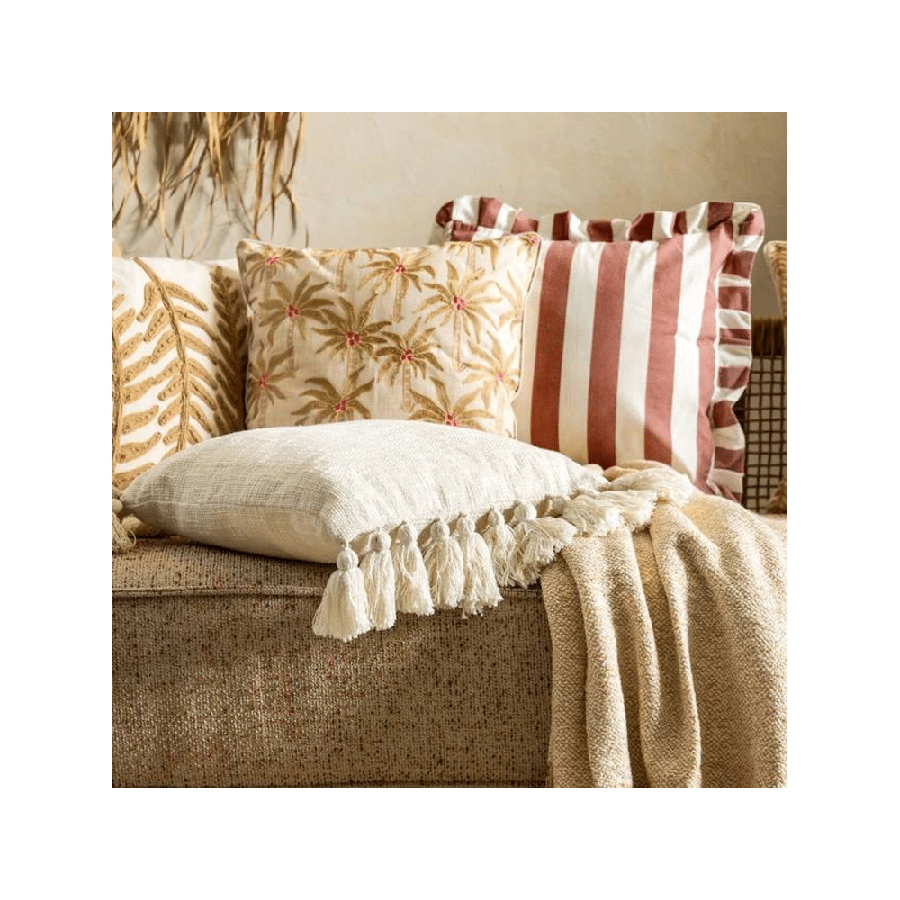 Dit sierkussen brengt meteen sfeer in jouw woonkamer of slaapkamer. De zachte textuur en neutrale kleur maken het eenvoudig om te combineren met andere decoratie en woonaccessoires.
