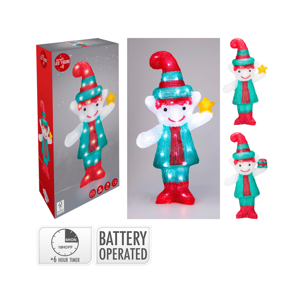Breng instant kerstsfeer in huis met deze speelse elf met 50 warme LED-lichtjes. Met zijn 48 cm valt hij meteen op in je interieur, vensterbank of onder de kerstboom. Dit decoratief figuurtje is verkrijgbaar in 2 verschillende modellen — apart verkocht — en zorgt voor een glimlach bij groot en klein.Kerstdecoratie die opvalt