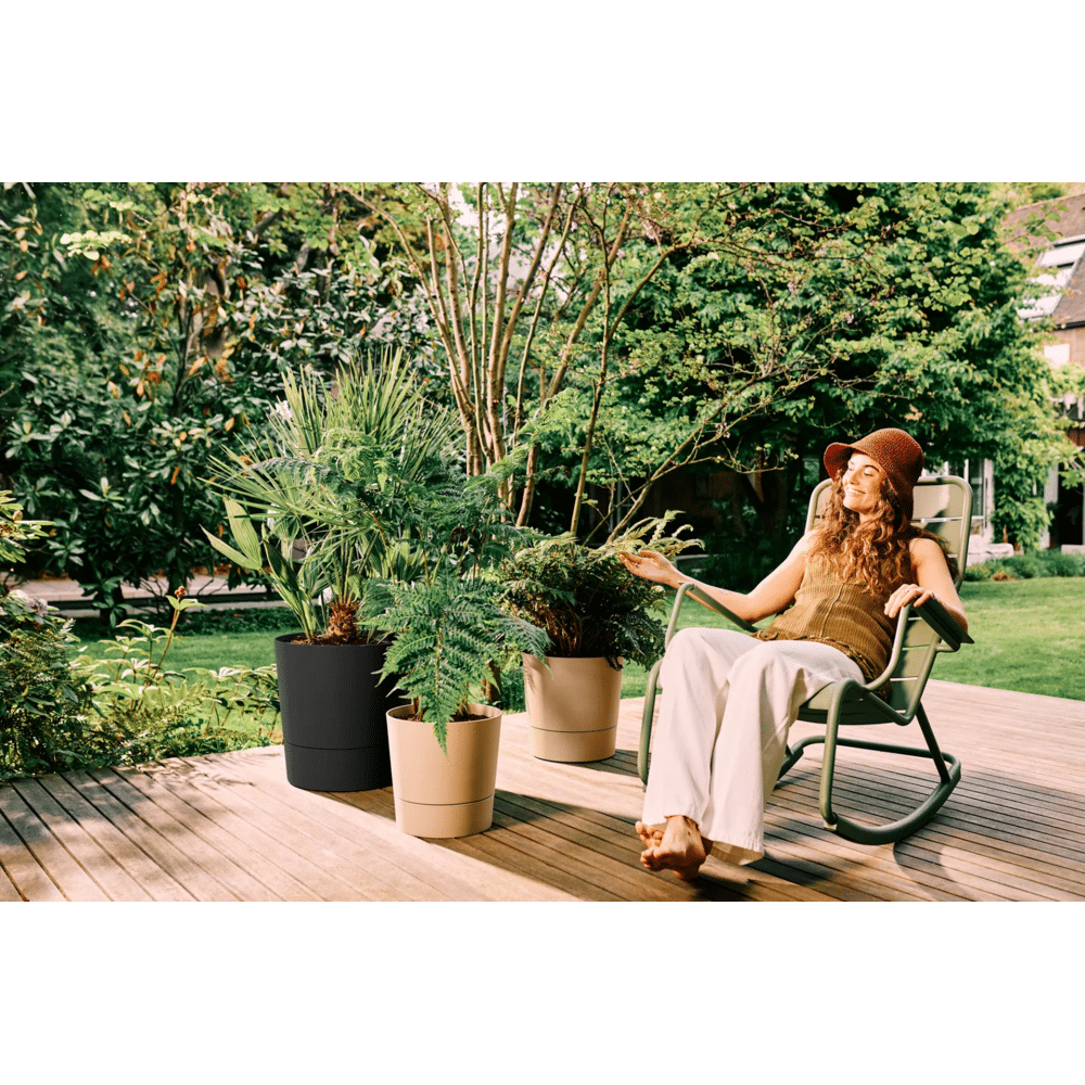 Deze plantenpot heeft een geïntegreerd waterreservoir dat overtollig water opvangt en precies de juiste hoeveelheid vocht vrijgeeft wanneer je plant het nodig heeft. Gemaakt van 100 % gerecycled plastic is hij duurzaam, vorstbestendig en volledig recyclebaar voor een groene leefomgeving.