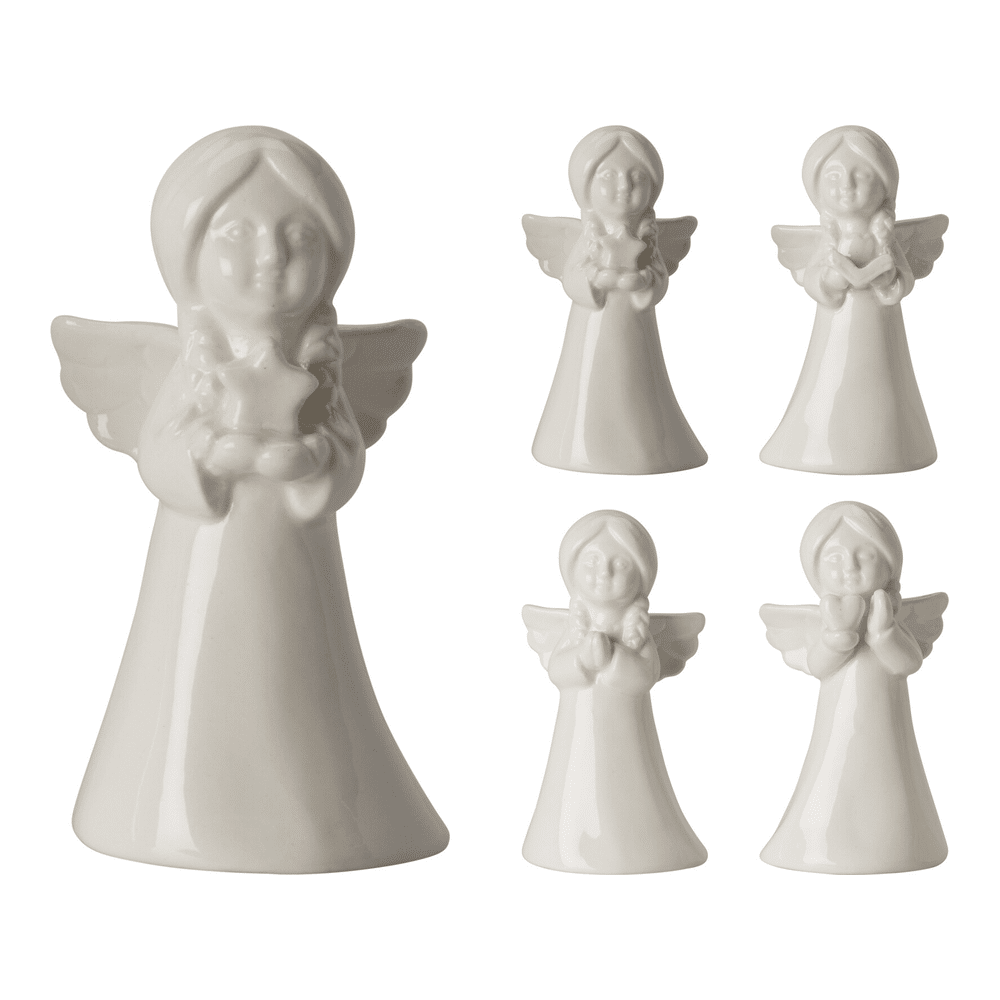 Voeg een vleugje magie toe aan je kerstdecor met dit schattige engeltje van 11,5 cm. Gemaakt van fijn keramiek, dus breekbaar maar oh zo stijlvol. Elk engeltje heeft zijn eigen charme — je ontvangt één exemplaar uit een betoverend assortiment van vier. Perfect om je interieur een warme, hemelse toets te geven!Waarom je dit engeltje wil