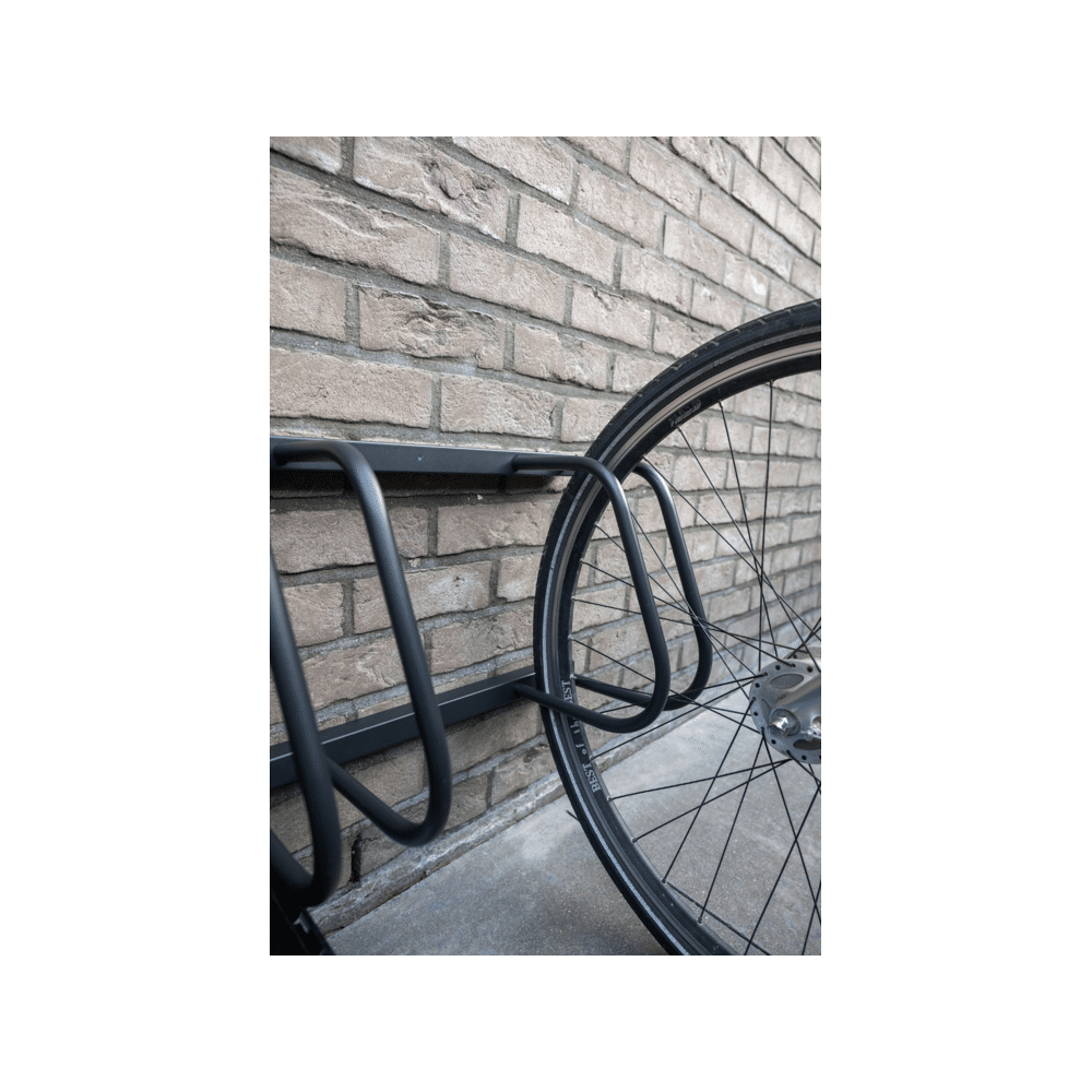 Jij kiest voor stabiliteit en ruimte met een duurzaam metalen fietsenrek in mat zwart dat ideaal is voor thuis, garage of fietsenstalling.