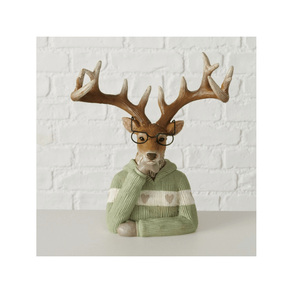 - Product: Figurine Denys Deer H 25 Cm Polyresin Beige Brown Light Green Assoritment