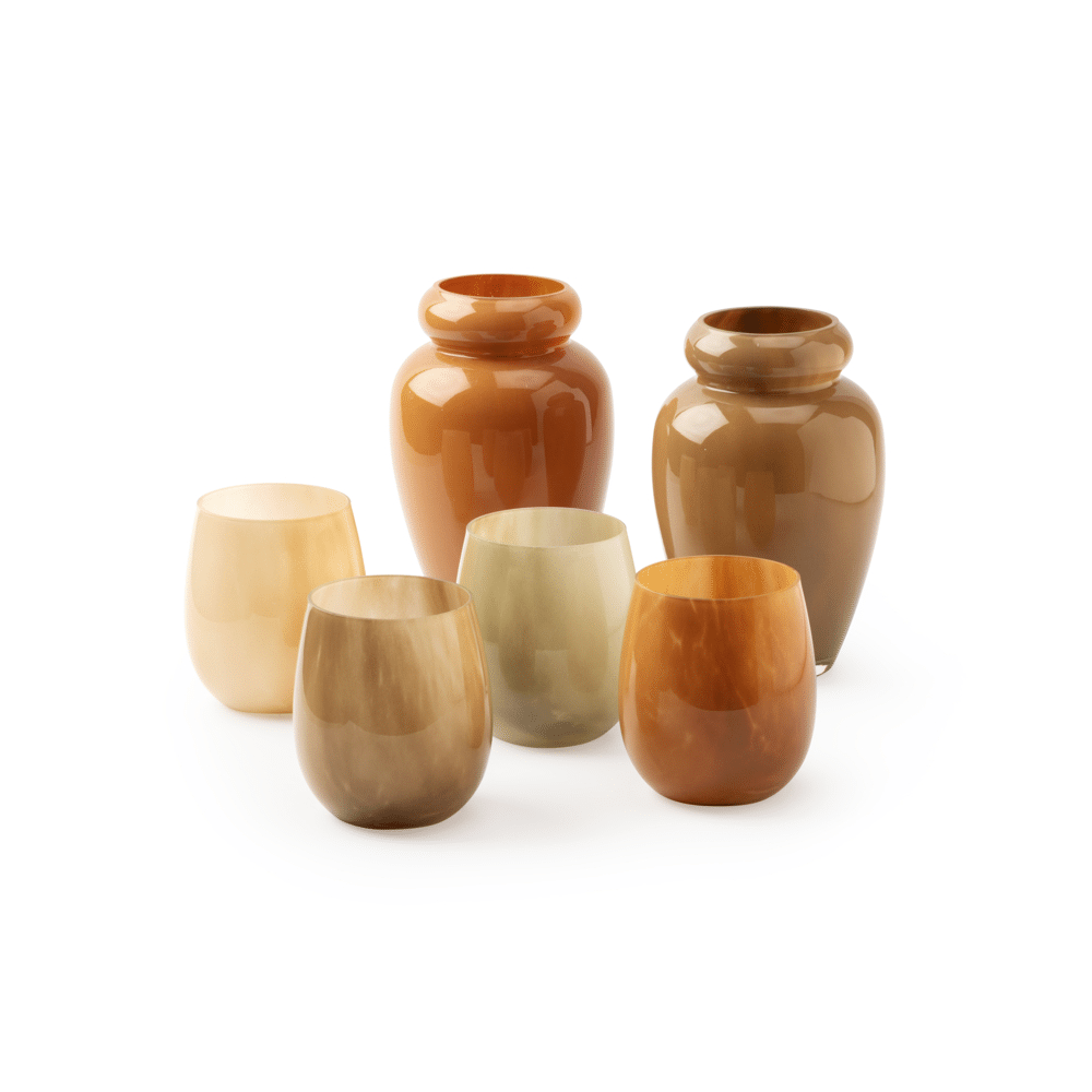 Compacte glazen vaas van 16 cm, verkrijgbaar in vier varianten. Perfect voor kleine boeketten of decoratieve toepassingen. Prijs per stuk.