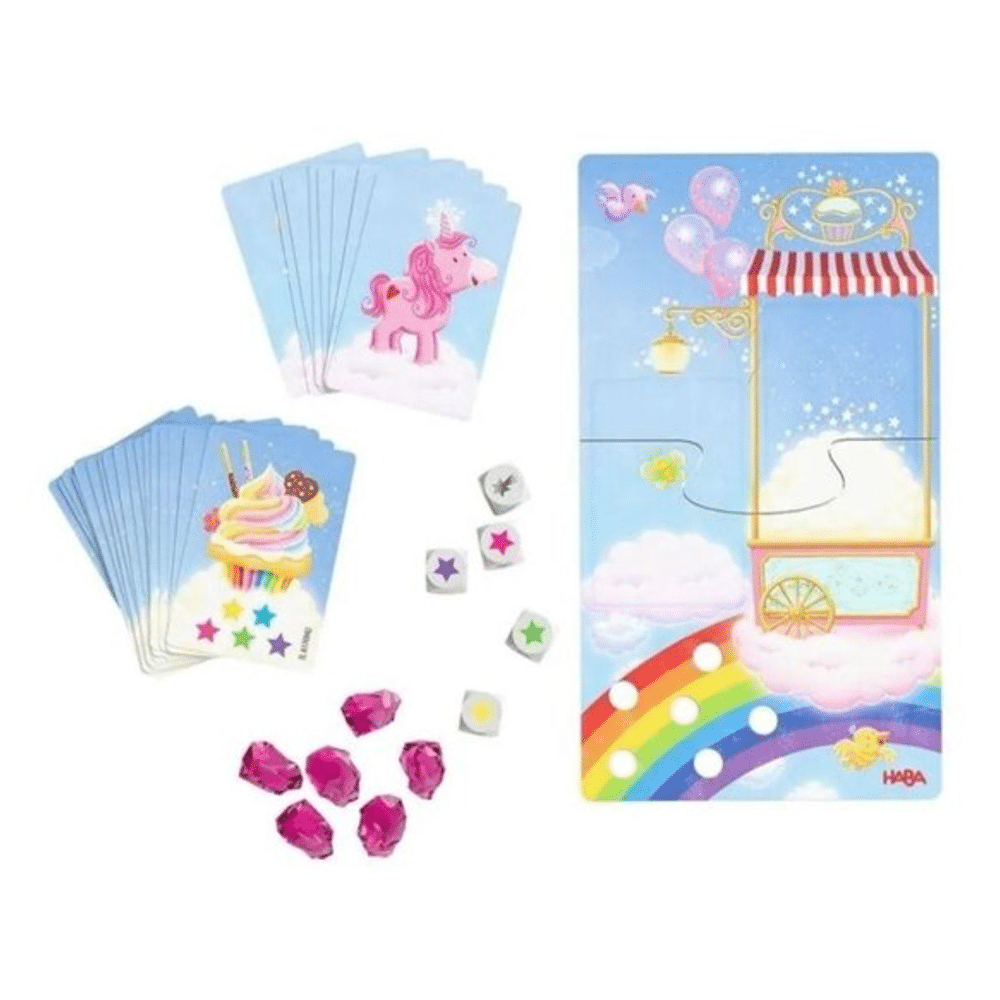 Haba Spel Eenhoorn Flonkerglans Magisch Dobbelplezier neemt jou mee in een sprankelend eenhoornavontuur vol dobbelgeluk, fantasie en speelplezier.