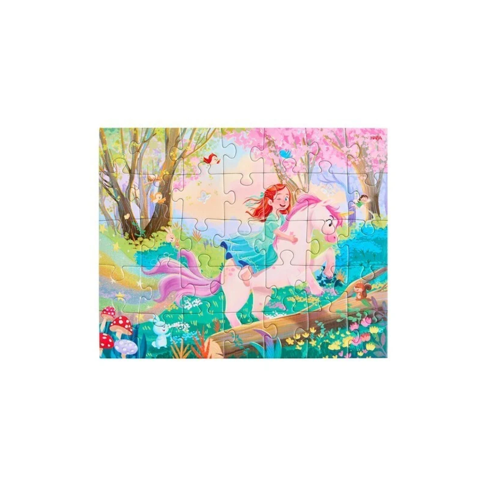 Haba Puzzel 48 Stuks Magische Dromen biedt urenlang magisch puzzelplezier en stimuleert fantasie, concentratie en motorische vaardigheden bij jonge kinderen.