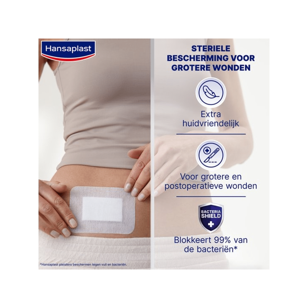 De grote maat bedekt wondes volledig en blijft stevig zitten, zelfs wanneer je beweegt.De zachte, latexvrije pleister voelt aangenaam en irriteert niet.