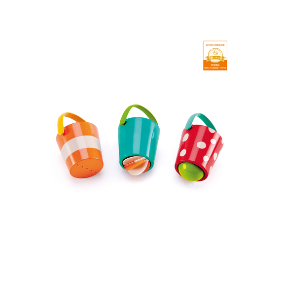 Drie kleurrijke emmers met waterafvoer voor leuke interacties. Perfect voor waterspelen!