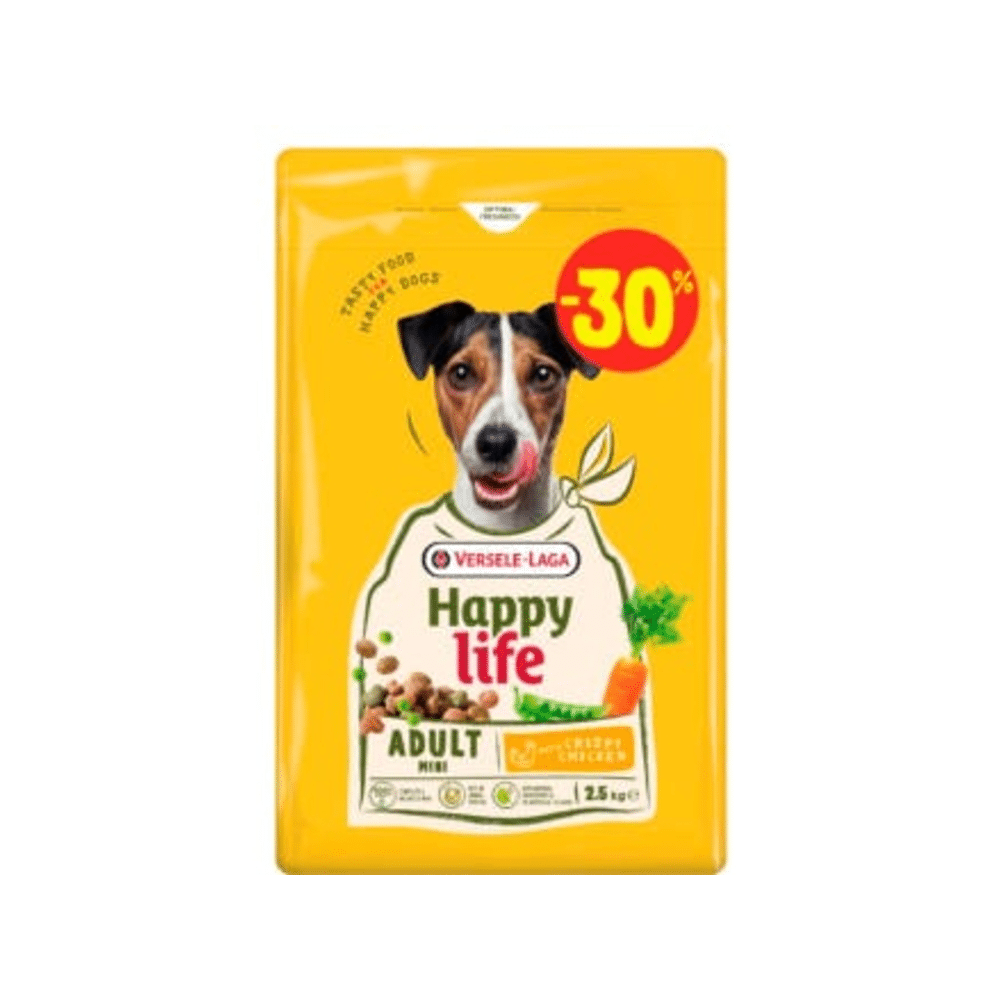 Met Happy Life Adult Mini Kip geef je jouw kleine hond een voedzame, smakelijke én voordelige maaltijd die elke dag opnieuw scoort.