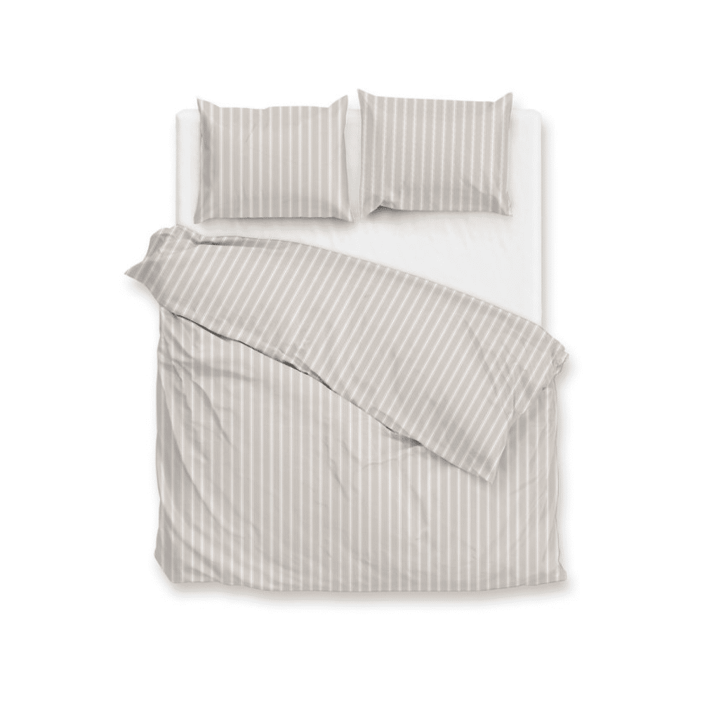 Fijn geweven percallekatoen met discreet streepmotief. De lichte taupe kleur zorgt voor een zachte, natuurlijke sfeer. Afmeting 140/200-220 cm, geschikt voor eenpersoonsbed. De ademende stof voelt koel en comfortabel aan. Eenvoudig te wassen op 60 °C.