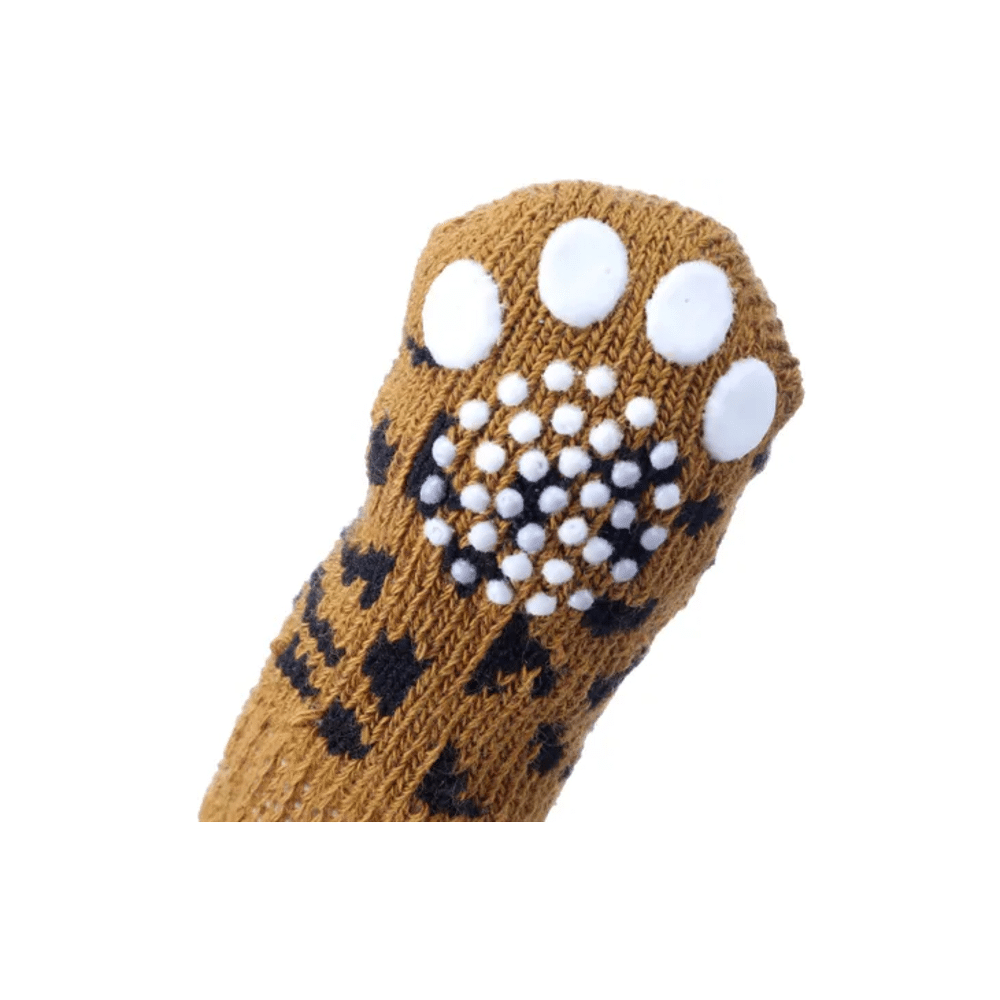 Sterke, zachte en slipvaste hondensokken in cognac. Ideaal om je viervoeter extra grip, warmte en comfort te geven in huis. Perfect passend voor kleine honden dankzij maat S.