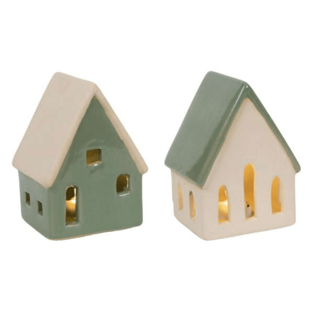 Huis Deco Simpel Beige/groen Led 10cm 7,5x6,5x10cm Assortiment Prijs Per Stuk