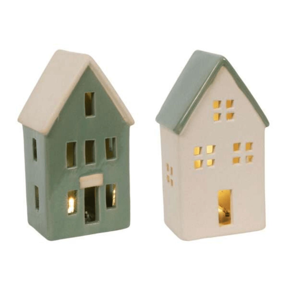 Huis Deco Simpel Beige/groen Led 15,5cm 8,5x6,5x15,5cm Assortiment Prijs Per Stuk