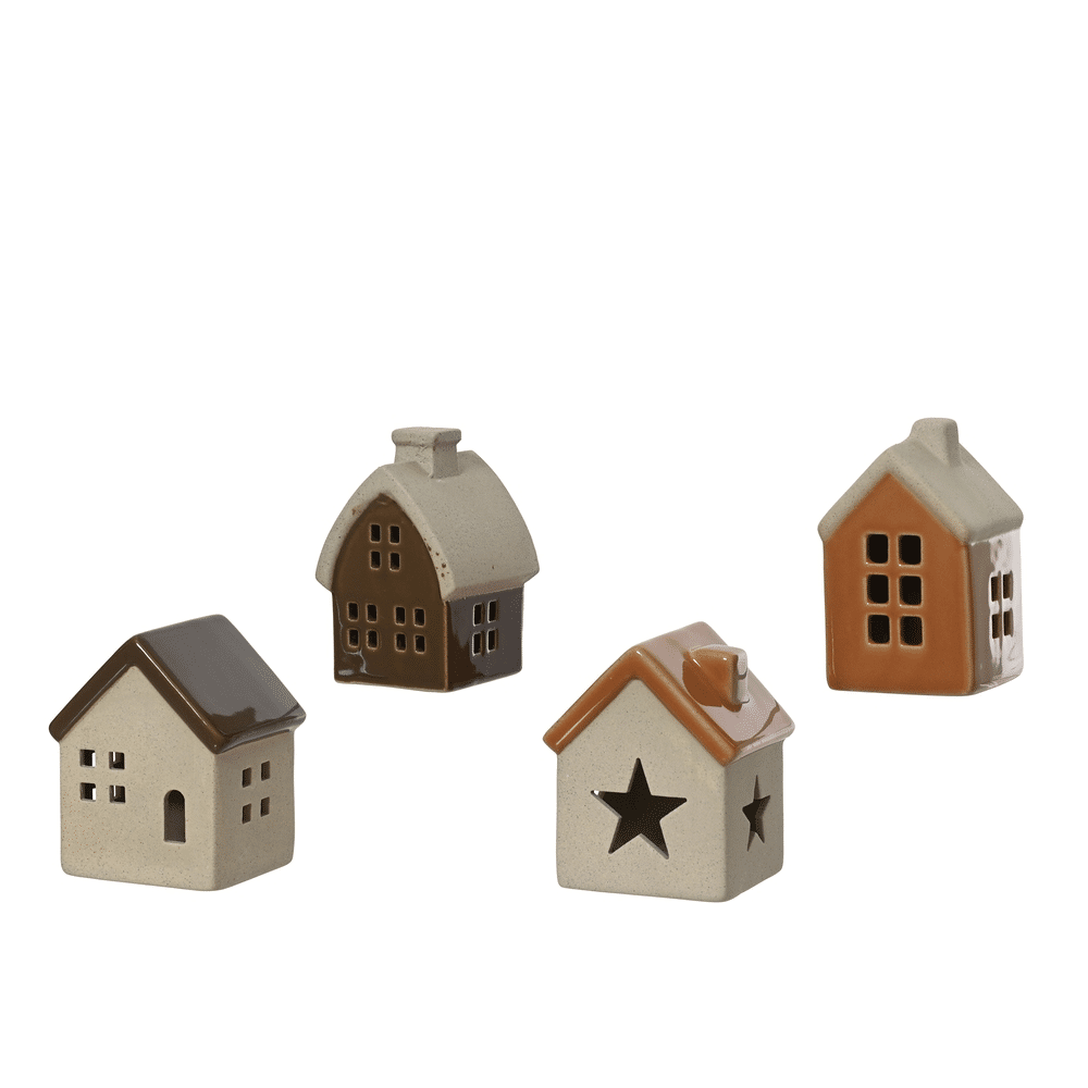 Breng meteen een warme kerstsfeer in huis met deze schattige porseleinen huisjes van 8 cm hoog. De rustieke bruintinten en fijne details maken elk mini-huisje een blikvanger in je kerstdecoratie. Verkrijgbaar in een verrassend assortiment van 4 modellen.Perfect voor jouw mini-kerstdorp
