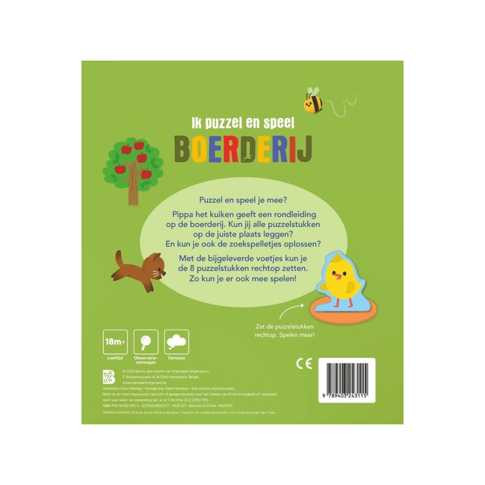 Interactief doeboek met boerderijthema, vol puzzels, spelletjes en kleurplaten. Stimuleert creativiteit, motoriek en kennis van dieren en het boerenleven.