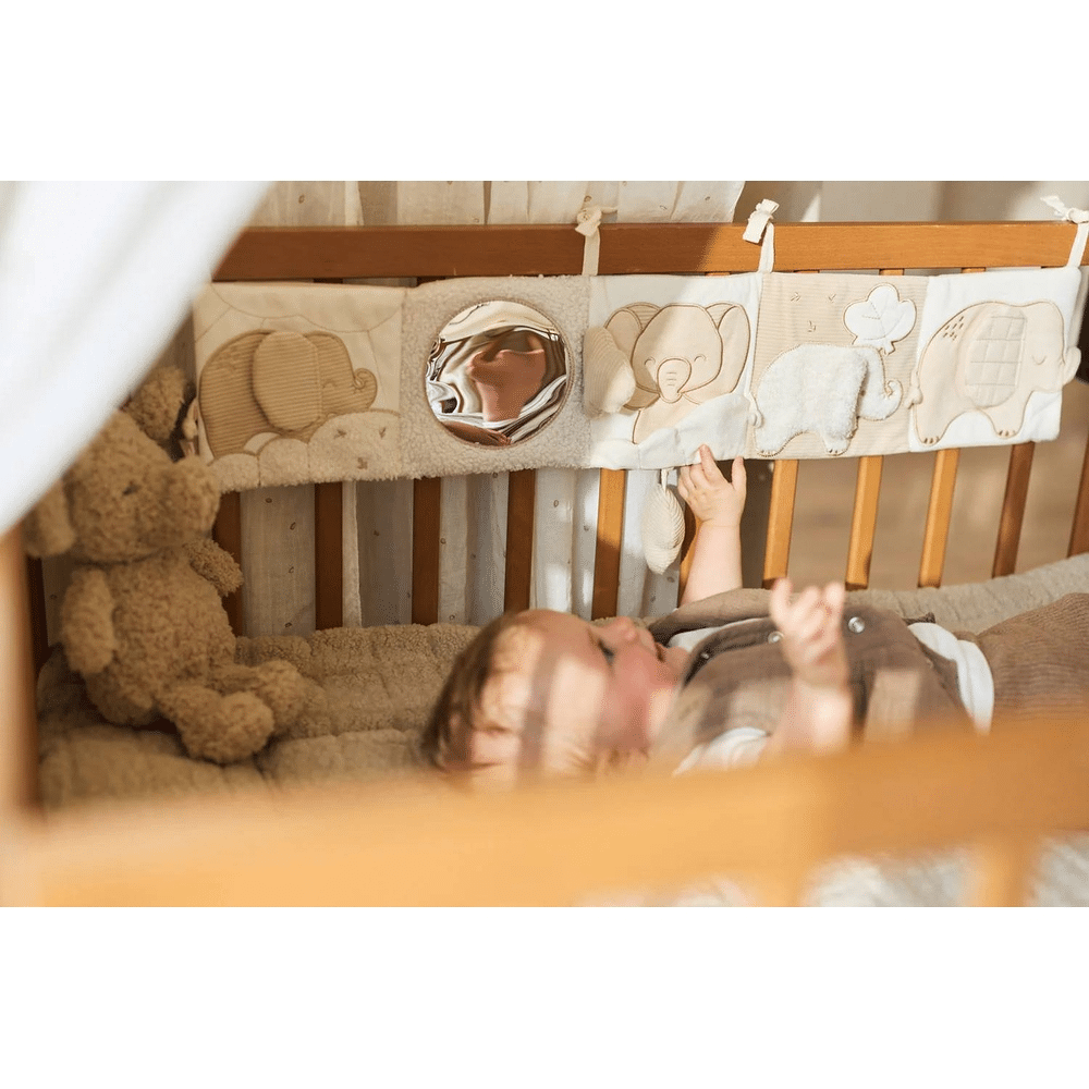 De Jollein Activiteiten Boxhanger Elephant Tales combineert spel, leren en veiligheid.Een vrolijke boxhanger waarmee je kleintje uren plezier beleeft!