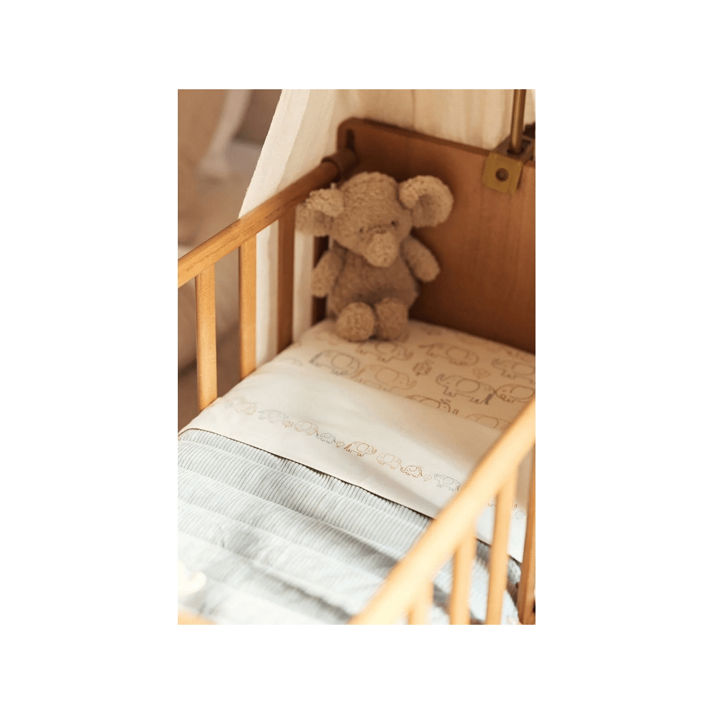 Maak van slapen een heerlijk zacht moment met het Jollein Laken Wieg 75x100 Elephant Tales. Dit lieve laken is vervaardigd uit hoogwaardig, ademend materiaal dat zacht aanvoelt op de tere huid van jouw kleintje. Het vrolijke Elephant Tales-design met schattige olifantjes geeft de wieg een speelse en knusse uitstraling. Dankzij de perfecte maat van 75x100 cm past het laken mooi in de wieg en blijft het op zijn plaats, zodat jouw kindje veilig en rustig kan dromen. Eenvoudig te wassen en snel droog, altijd klaar voor een nieuwe droomnacht.