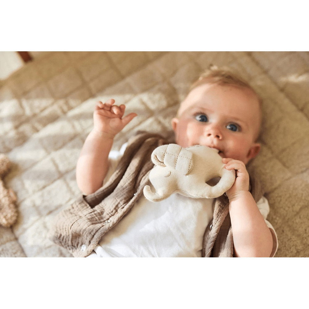De Jollein Rammelaar Elephant Tales houdt je kleintje actief en nieuwsgierig.Zachte materialen en vrolijke kleuren zorgen voor uren speelplezier en ontdekking.