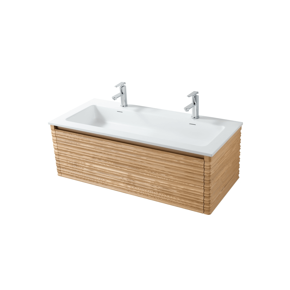Kamellia Wastafelonderkast - 1 Lade - Greeploos - Soft Close - 119x40x52 Cm - Licht Walnoten